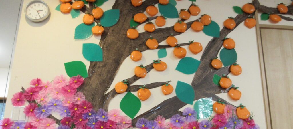 - 季節ごとの壁面飾り(お正月飾り、おひな様、春の花、秋の実り など)