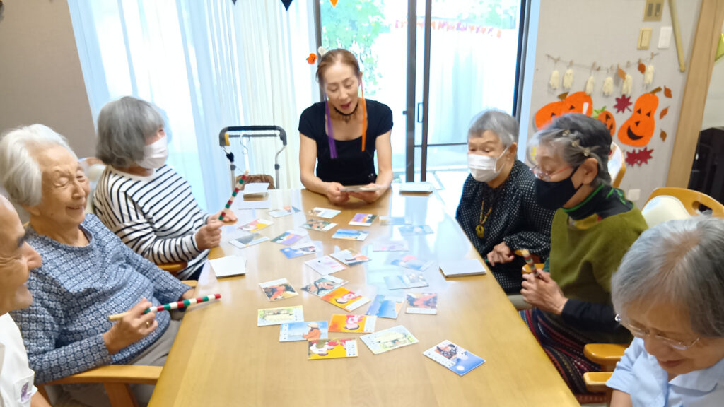 - 歌カードを使った歌当てゲームや、音楽に合わせた軽い体操
